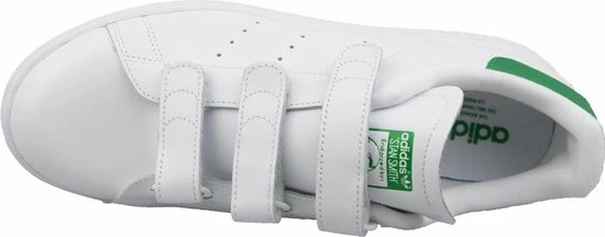 De Stan Smith toont een sobere en overzichtelijke stijl die cultus is geworden. Deze versie bevat authentieke details zoals 3 geperforeerde strips en vervangt de veters met drie zelf grijpende strips voor een originele Touch.