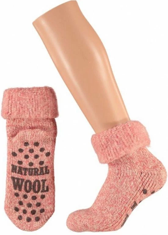 Wollen huis sokken voor dames roze. Warme wollen sokken in het roze met anti-slip.