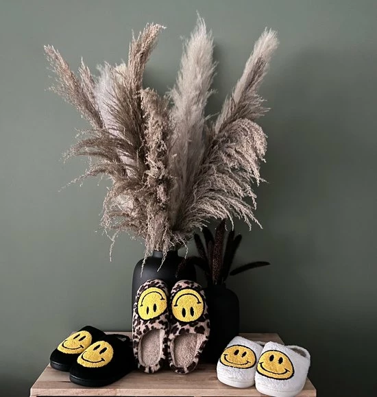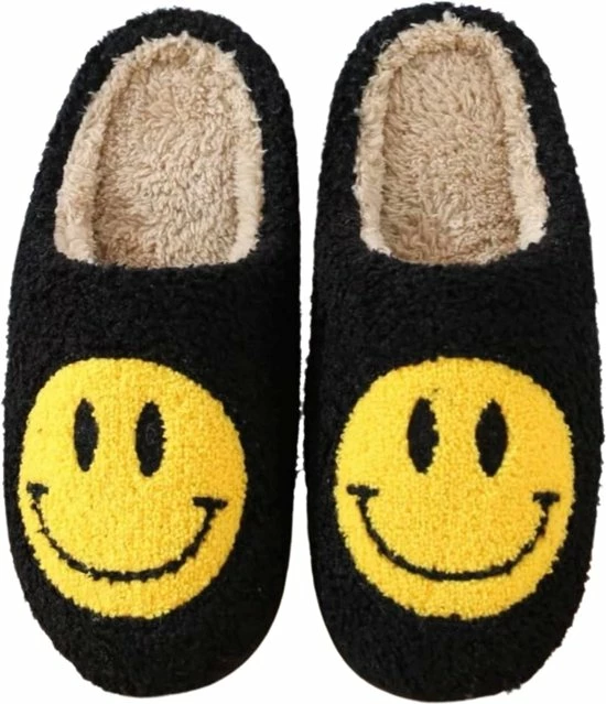 Hier word je toch vrolijk van! Combineer je comfy chill-outfit met deze hippe Smiley sloffen. Dit trendy design voelt heerlijk zacht & warm aan je voeten. Heb jij moeite met opstaan? Als je deze zachte sloffen met smiley embleem naast je bed ziet staan word je meteen weer happy.