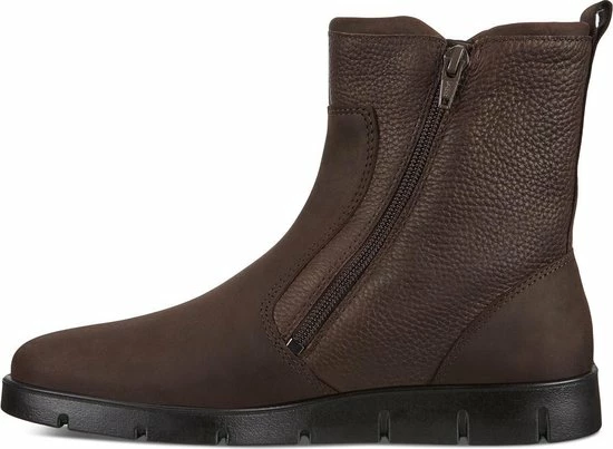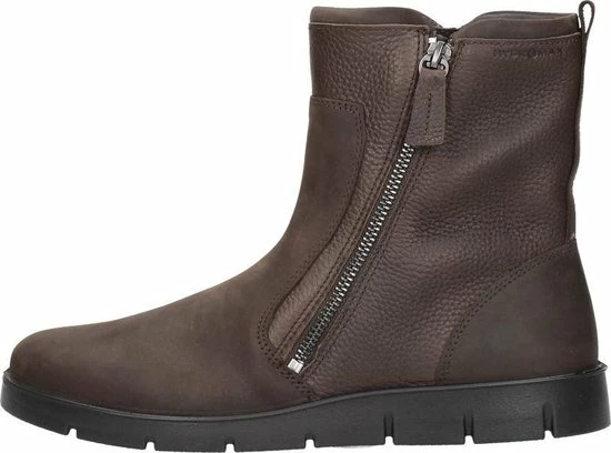 Bruine Ecco Bella enkellaarsjes, vervaardigd uit een combinatie van premium geolied nubuck en zacht nubuck voor een luxe, tijdloze uitstraling. De schoenen zijn behandeld met Hydromax voor een waterafstotende en ademende werking. De voering bestaat uit textiel voor een zacht gevoel. Zowel aan de binnenzijde als de buitenzijde is een rits geplaatst voor een eenvoudige instap. Door het gebruik van de Fluidform-technologie is het bovenwerk naadloos en zonder lijm verbonden aan de zool. Hierdoor ervaar je optimale demping en veel comfort tijdens het lopen. De loopzool is slijtvast, licht en flexibel. De bruine Ecco Bella enkellaarsjes hebben een uitneembaar voetbed.