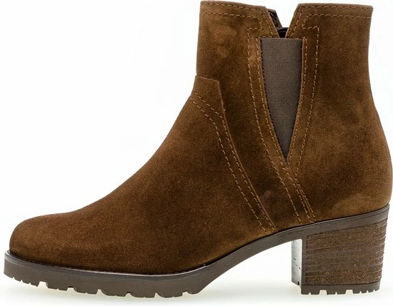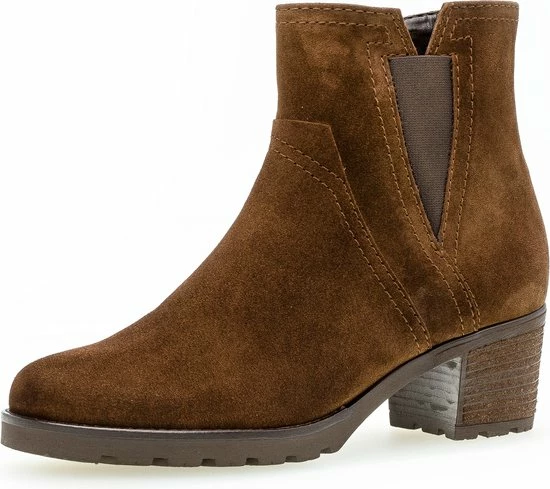 Mooi & comfortabel! Dat is deze cognackleurige enkellaars 804 uit de Comfort collectie van het merk Gabor. Comfort schoenen hebben meer volume bij de tenen en bij de bal van de voet en bieden voor iedere voet de noodzakelijke ruimte. Dit model is uitgevoerd in zacht suède met een binnenvoering van zacht textiel en een vast voetbed. Met de handige ritssluiting aan de binnenkant en de elastieken inzet aan de buitenkant trek je ‘m makkelijk aan en uit. Het laarsje heeft een normale G-wijdte en de rubberen zool met grof profiel biedt grip en een hoog loopcomfort. De schoen heeft een plateau van 1,5 centimeter, een hakhoogte van 6 centimeter en de schachthoogte is 12 centimeter, gemeten bij maat 37. Match ze onder jouw lievelingsbroek of -jurk en je bent klaar voor een mooie, nieuwe dag!