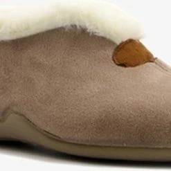 Beigekleurige, gevoerde pantoffels voor dames van Hush Puppies. Het binnen- en buitenwerk van deze comfortabele pantoffel is gemaakt van textiel. Deze warme pantoffels hebben een stevige zool en een comfortabel voetbed.