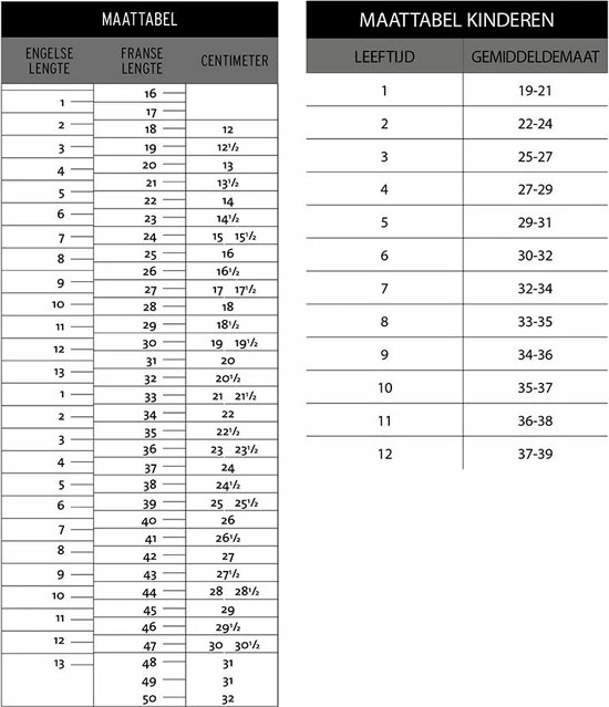 | Maat | 40, 41, 42, 43, 44, 45, 46 |