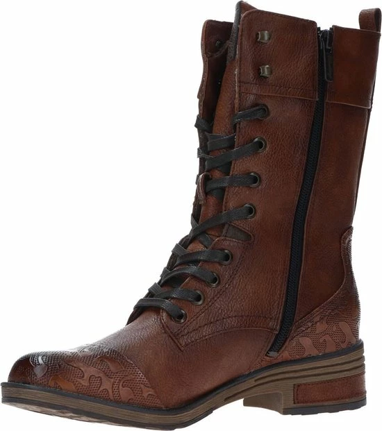 Mustang dames veterboot. Deze stoere veterboot met mooie details komt uit de collectie van Mustang. Uitgevoerd in imitatieleer. Gevoerd met zacht en warm fake fur. Naast de veters is de boot ook voorzien van een rits voor een gemakkelijke instap. De hak heeft een hoogte van 4 cm.