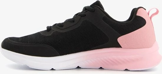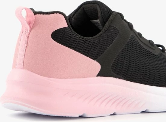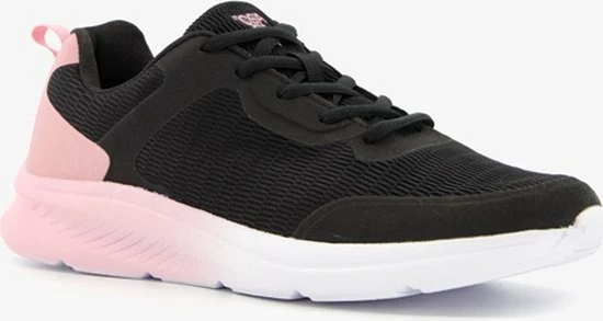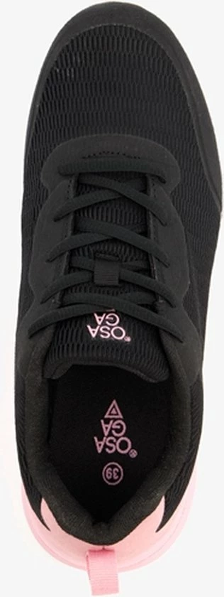 Zwart met roze fitnessschoenen voor dames van Osaga. Gemaakt van ademend mesh, een binnenvoering van textiel en een flexibele zool. De fitnessschoenen hebben een vetersluiting en comfortabel voetbed van textiel. Deze is niet uitneembaar.
