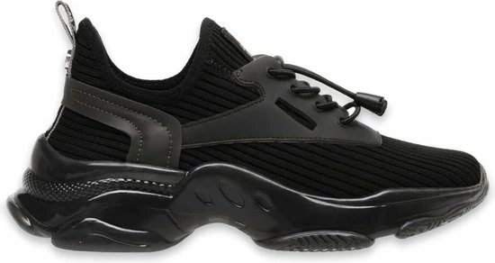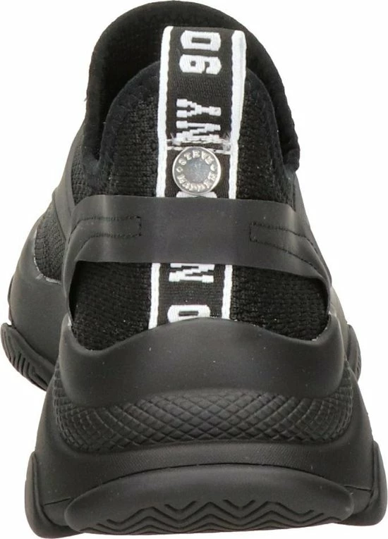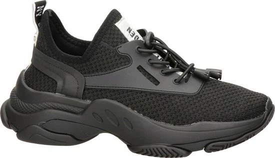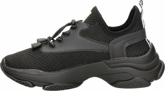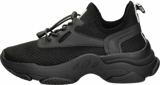 Maak een statement met deze zwarte dadsneaker Match van het merk Steve Madden. Het bovenwerk is gemaakt van ademend mesh met zwarte, rubberen overlays en een trekkoordsluiting met elastische veters. Op de tong en de hiel bevindt zich textiel logotape en de elastische enkelkraag biedt een gemakkelijke instap. De uitbundig gevormde fAshionzool heeft een goede grip en maakt de sneaker extra opvallend én comfortabel. Het binnenwerk is van textiel en heeft een uitneembaar voetbed. Draag ‘m bij een toffe jeans of een zwierige jurk en je valt lekker op! Maatadvies: dit model valt smal.