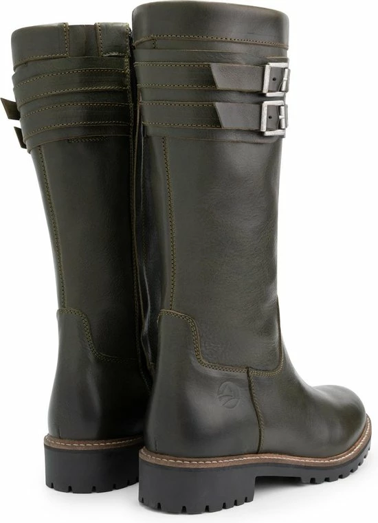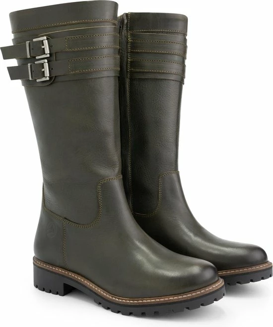 Deze cleane kuithoge boots van het merk Travelin’ hebben een volledige rits die het aan- en uitdoen vergemakkelijkt. De leren laars is volledig wol gevoerd en heeft net als alle laarzen van Travelin’ een uitneembare inlegzool met een toplaag van wol. De rubberen zool met grof profiel zorgt voor extra grip en stabiliteit. De twee riempjes op de kuit geven deze comfortabele laars met een stoer uiterlijk.