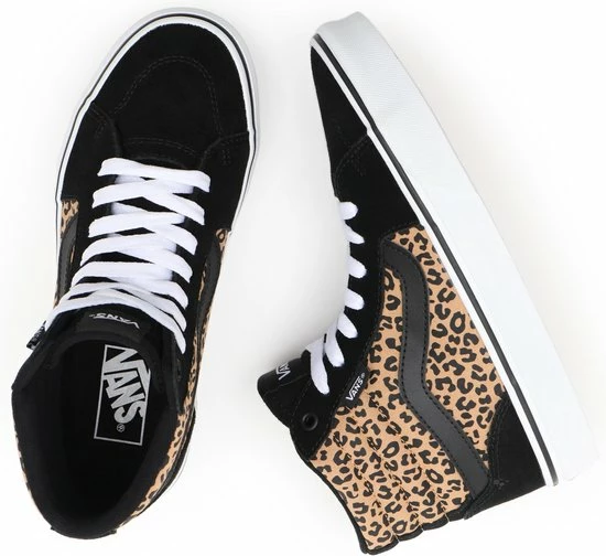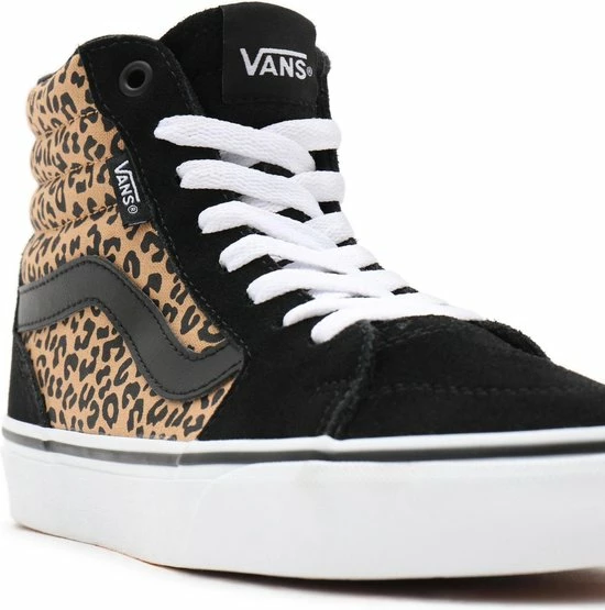 Vans WM Filmore Hi Cheeta dames sneaker. Ben jij ook een liefhebber van Vans en heb je toch behoefte aan iets anders? ga dan voor deze dierenprint sneaker! Uitgevoerd in een combinatie van Sùede en canvas. Heeft een binnenvoering van synthetisch textiel. De rubberen zool heeft een profiel voor een goede grip.