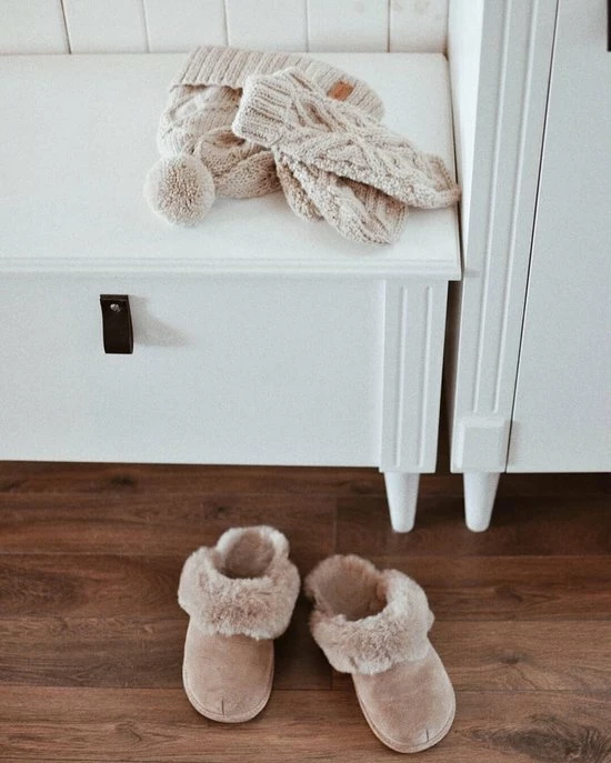 Deze instappers zijn gemaakt van soepel leer en zijn gevoerd met een warme schapenvacht.