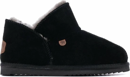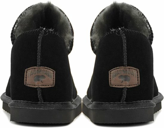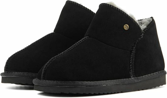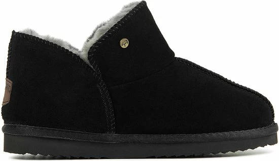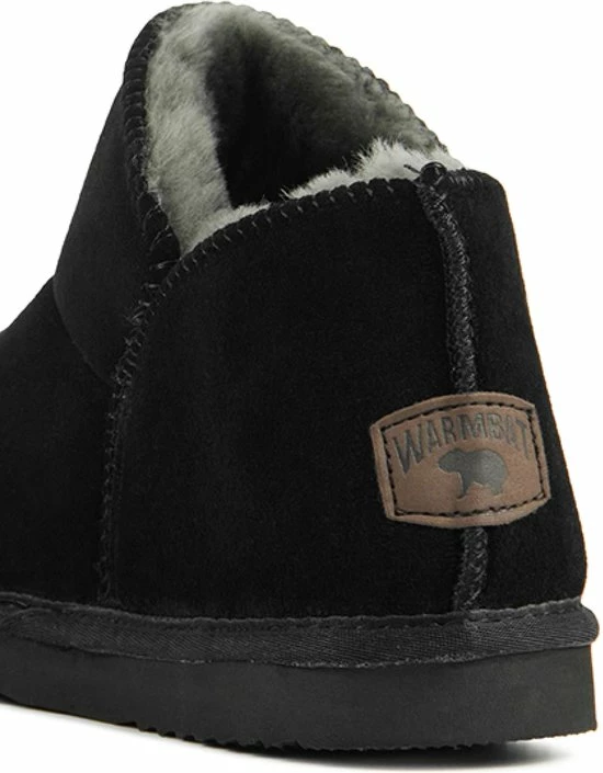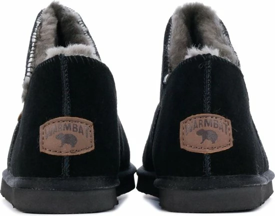 Zwarte pantoffel met schapenwol voor dames van het merk Warmbat Australia. Deze hoge pantoffel met ronde neus is uitgevoerd in zwart suède en is voorzien van een stiknaad op de neus en op de schacht en daarnaast beschikt dit model over een merkembleem op de wreef en achterbies. De binnenvoering is van merino wol, wat zorgt voor lekkere warme voeten. Verder heeft de rubberen loopzool een grof profiel voor een stevige grip.