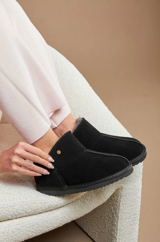 Damespantoffel model WLW3219 in de kleur zwart van Warmbat Australia.